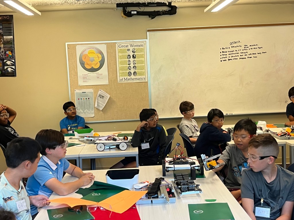 This summer we brought back our robotics summer camp with two amazingly successful weeks! The summer camp originally started in the summer of 2019, but due to covid-19 we didn’t repeat it till this year. This summer both of our camp weeks followed the same procedure, spending the majority of the day working on build challenges, with breaks for snack and outdoor games.
